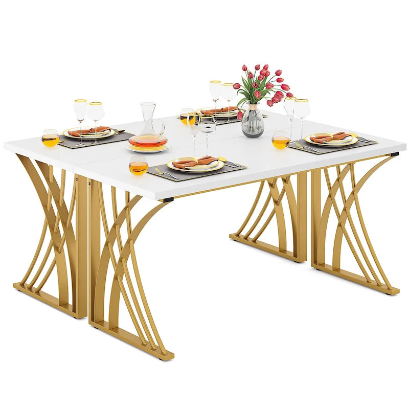 - High-quality Materials: Durably constructed of environmentally E1 particleboard in white finish and powder-coated gold steel tubes, together create a sturdy, yet stylish table. This office desk can support up to 250 lbs, giving you durable and solid support for your computers and other essentials.