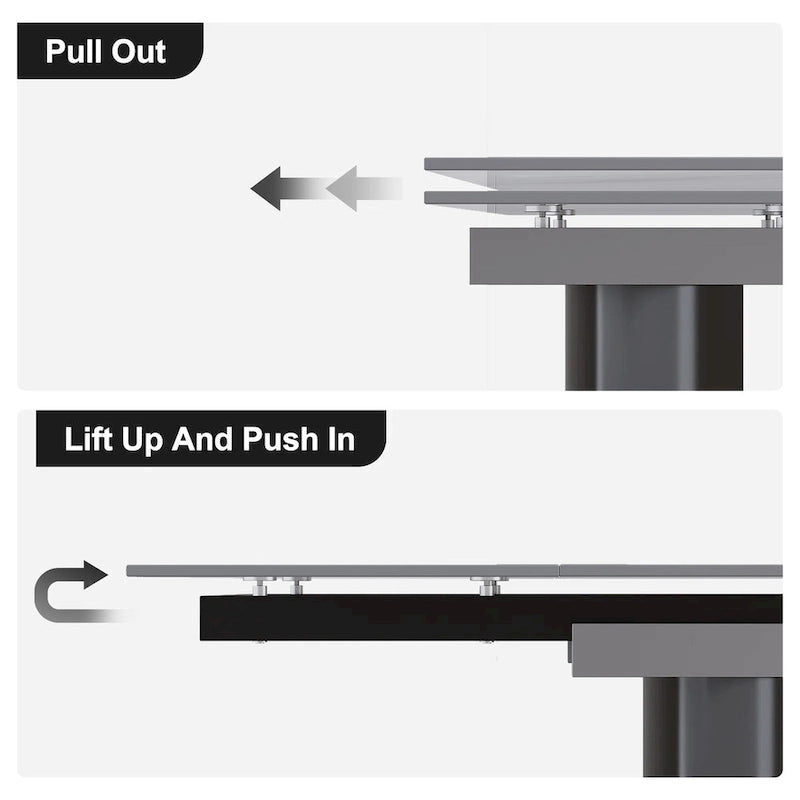 Extendable table The sintered stone table top has a hidden extended tabletop section at the bottom, and the overall length of the dining table ranges from 62.99 to 94.48. It can hold up to 8-10 people,which is perfect for accommodating larger gatherings.