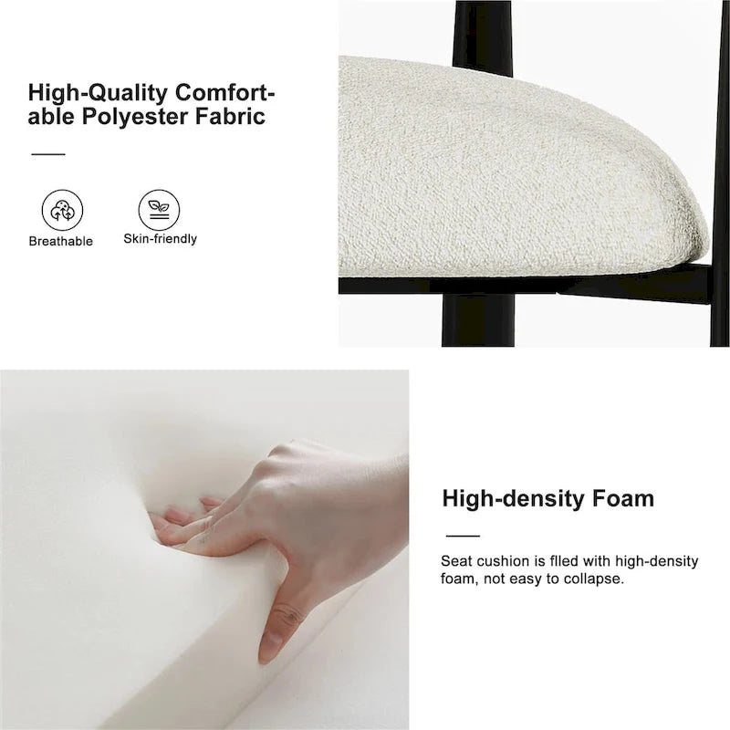 Elegant Fabric Seating: The dining chair set complements the table with its fabric upholstery and metal chair legs, creating a cohesive and stylish ensemble that enhances the overall dining experience.