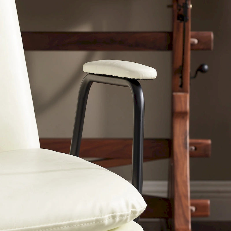 Inject a hint of retro sophistication into your work environment with the Art Leon Swivel Chair. This chair, embodying the essence of mid-century modern design, showcases a channel stitch seat back, stylishly upholstered armrests, and a swiveling seat. Enhanced with high-density foam padding and faux leather upholstery, this chair seamlessly combines comfort with durability. Select from a range of upholstery colors and a base crafted from rubber wood to tailor this piece to your unique style preferences.