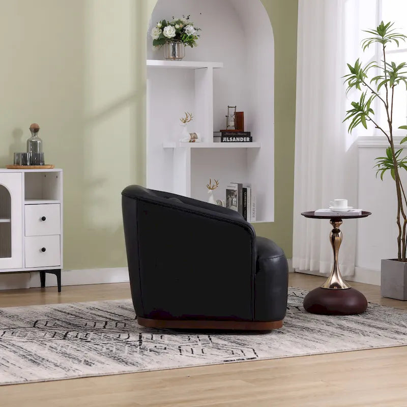 Black PU 31.5 Swivel Barrel Chair with Metal Base