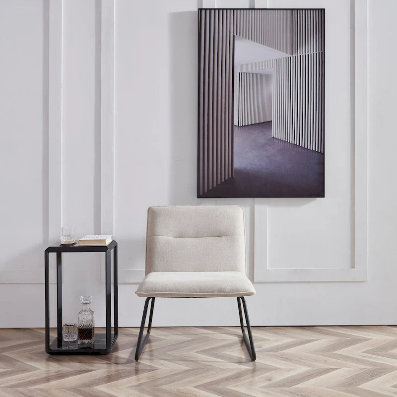 Add comfort and sophistication to your home decor with the Corvus Cosmo Fabric Lounge Accent Slipper Chair. Available in three stylish color options, this lounge chair features flat fabric or tulle baran upholstery with foam and fiber fill, providing utmost comfort. Its sturdy metal frame with black finish ensures durability and longevity. Plastic glides are included to protect your floors, and easy assembly makes setup a breeze.