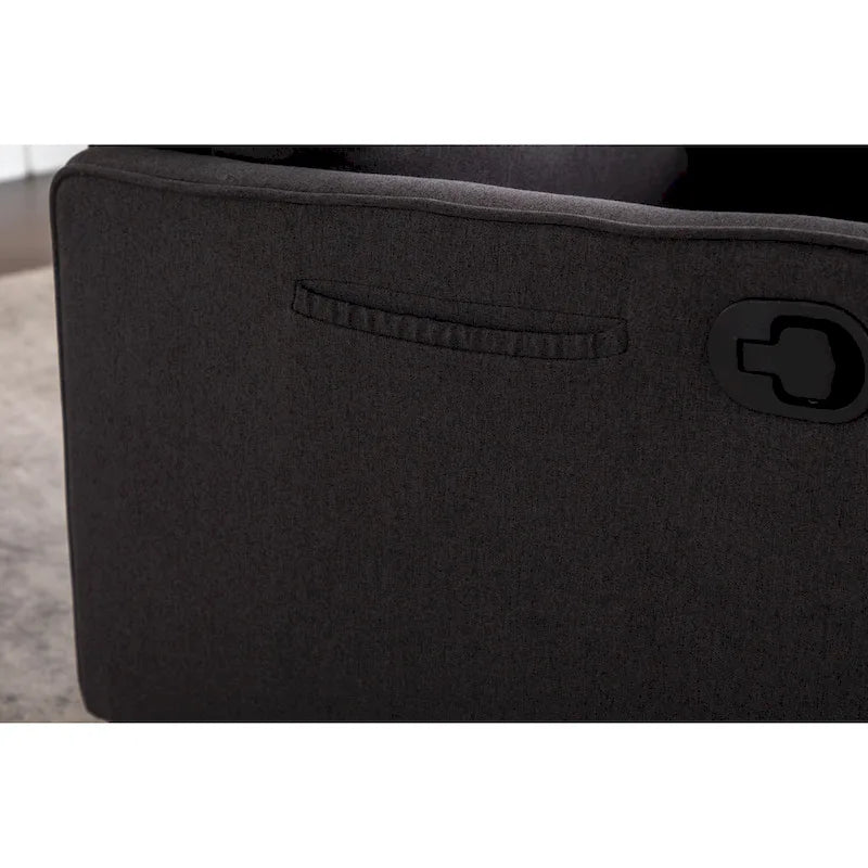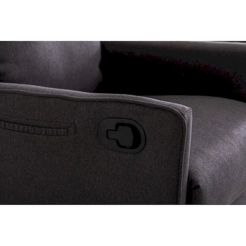- This cotton-linen upholstered glider recliner offers a gentle rocking motion and 360 swivel, perfect for relaxing moments in nurseries, living rooms, or bedrooms. With an adjustable backrest and footrest, plus a convenient side pocket, it blends function with comfort. Quick to assemble and easy to maintain.