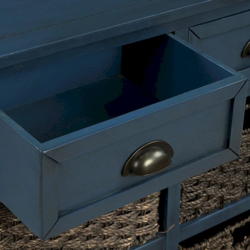 - Large Storage Space, 2 Drawers and 4 Classic Rattan Basket.