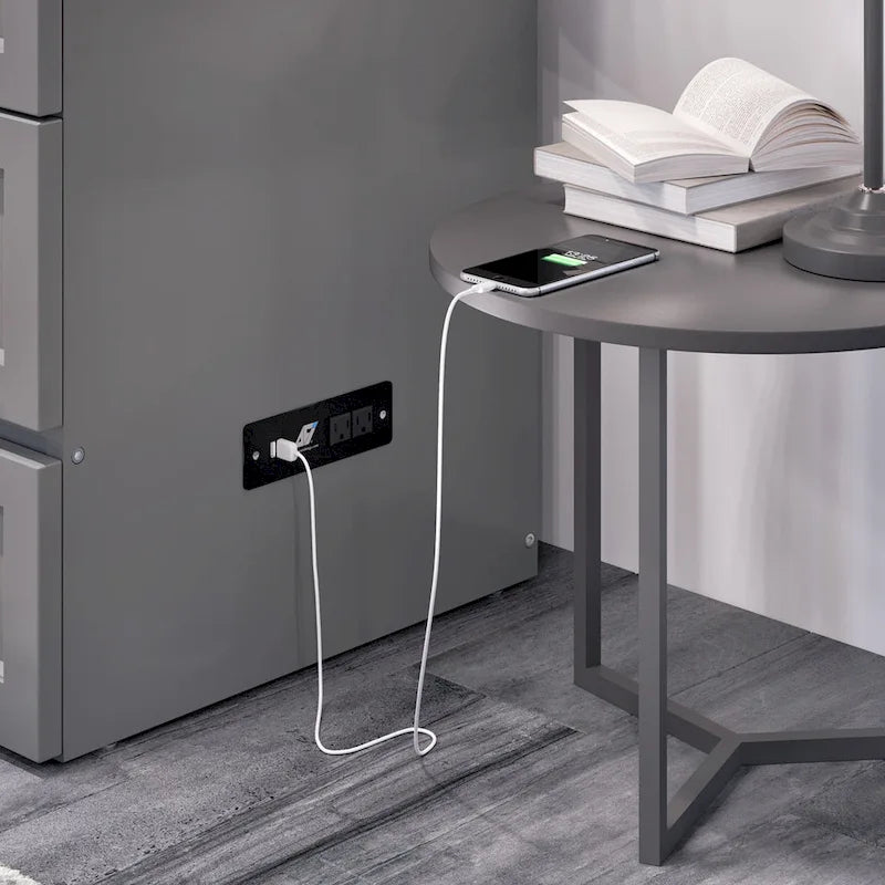 - USB Charging Station: Built-in Power Source with 9-foot cord and 2 USB Ports