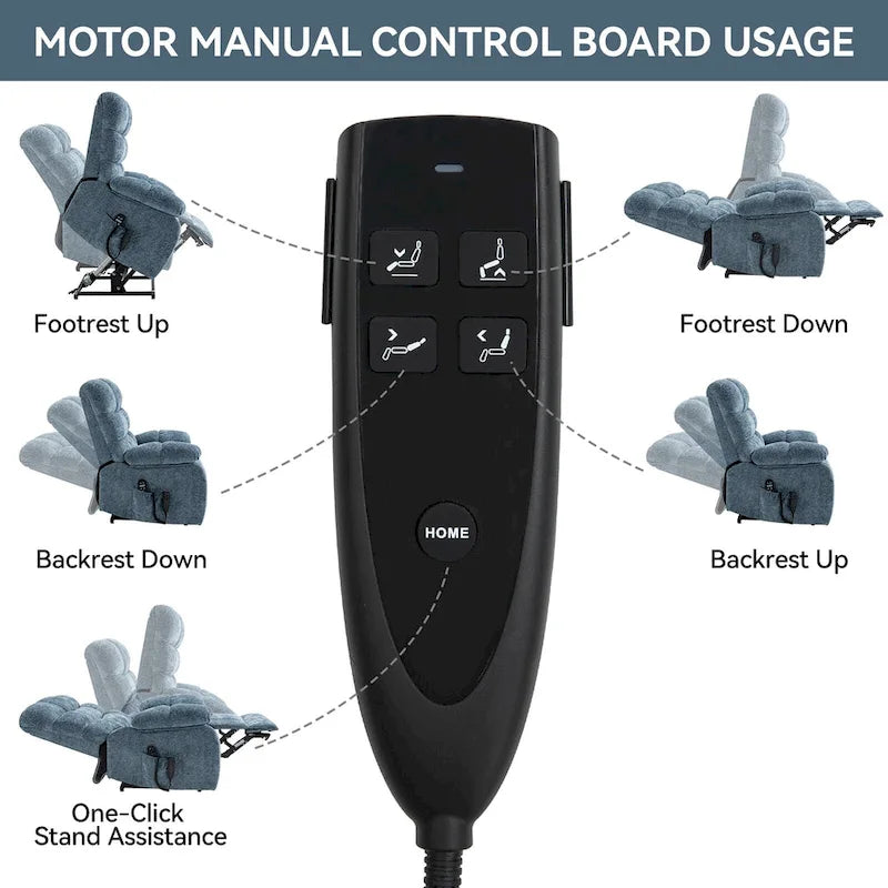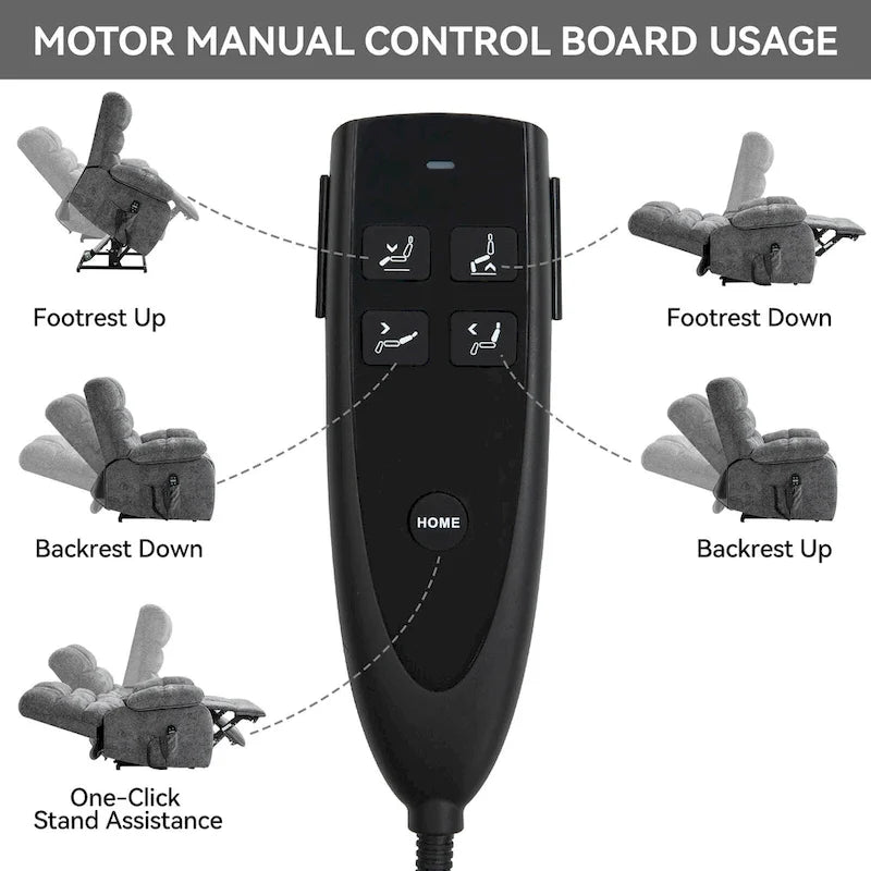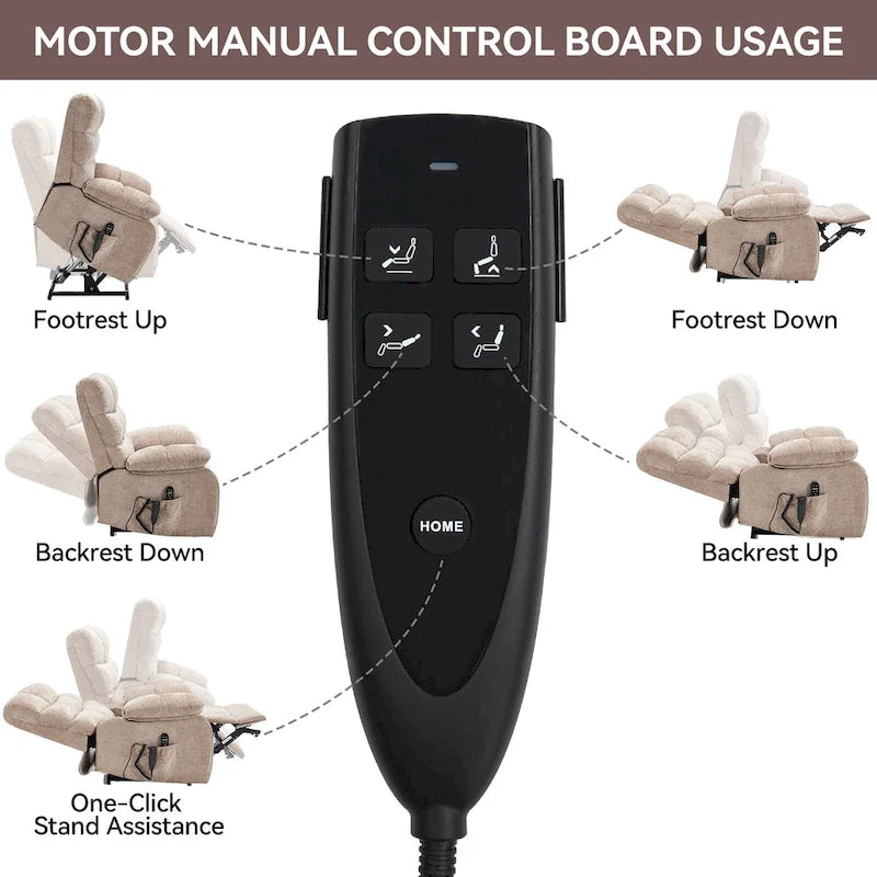 - Power Lift Recliner Chair with Dual Motor: Controlled by a power remote, this chair offers adjustable reclining positions up to nearly 180 degrees and an electric lift function. Its ideal for helping the elderly or individuals with balance issues, providing smooth and silent assistance when standing up.