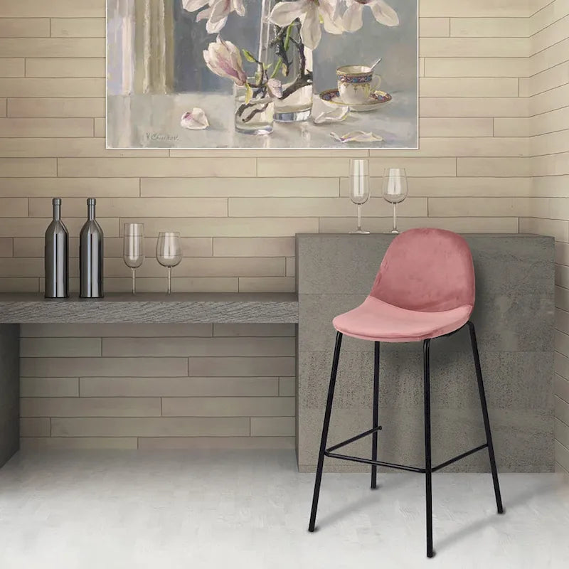 The Tam bar height stools are upholstered in soft velvet, making them delightful and stylish pieces around the house when you want to chill with friends or enjoy leisurely brunches.