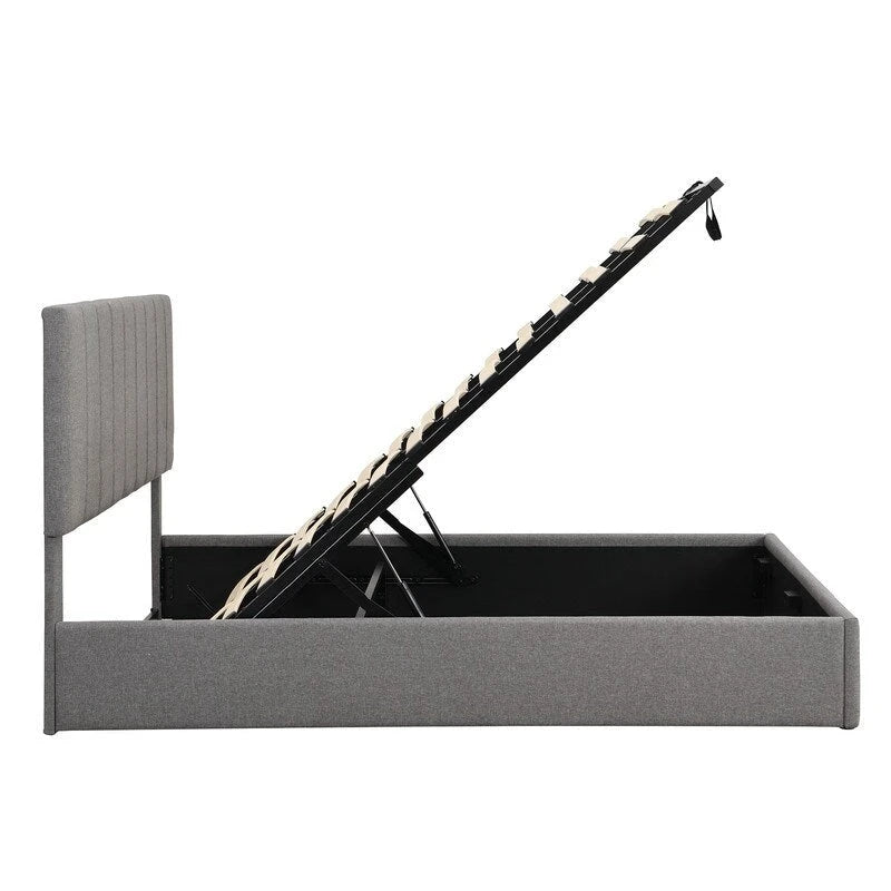 Queen Size Linen Upholstered Platform Bed with Lift Up Storage System