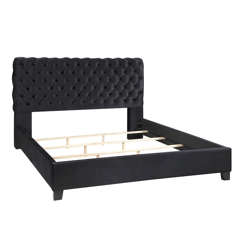 Roundhill Furniture Apoera Velvet Upholstered Button Tufted Bed, King, Black
