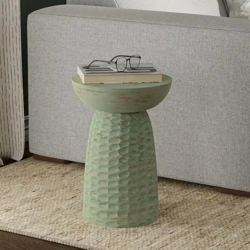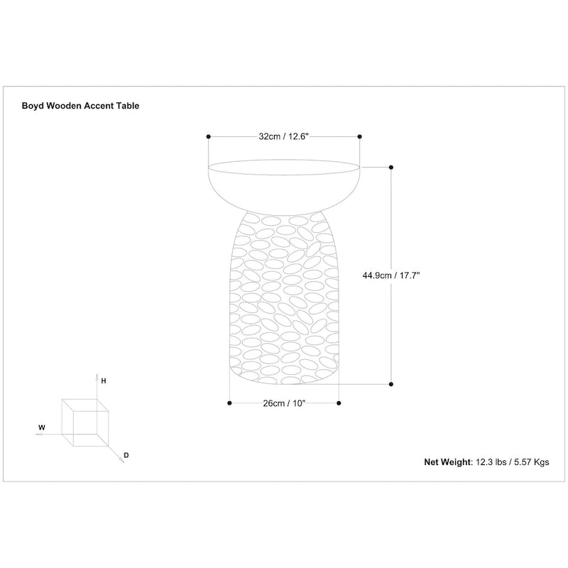 Bring sleek style to your space with the Willis Wooden Accent Table. The unique shape and distinctive textured detail will bring a striking statement to any room. Place it next to a sofa, bed, or your favorite accent chair for a decorative touch.